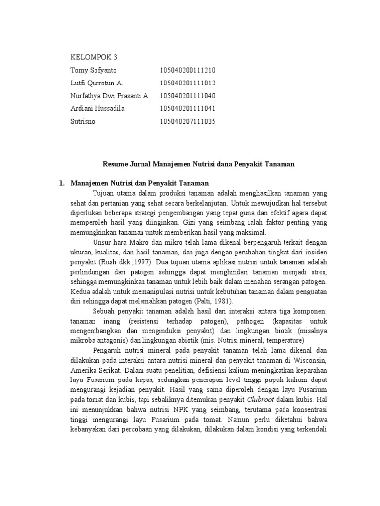 Resume Jurnal Manajemen Nutrisi Dana Penyakit Tanaman Pdf